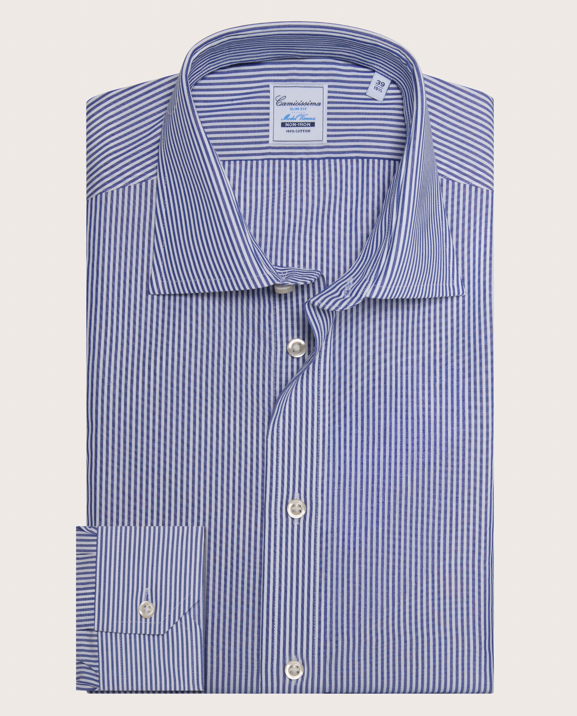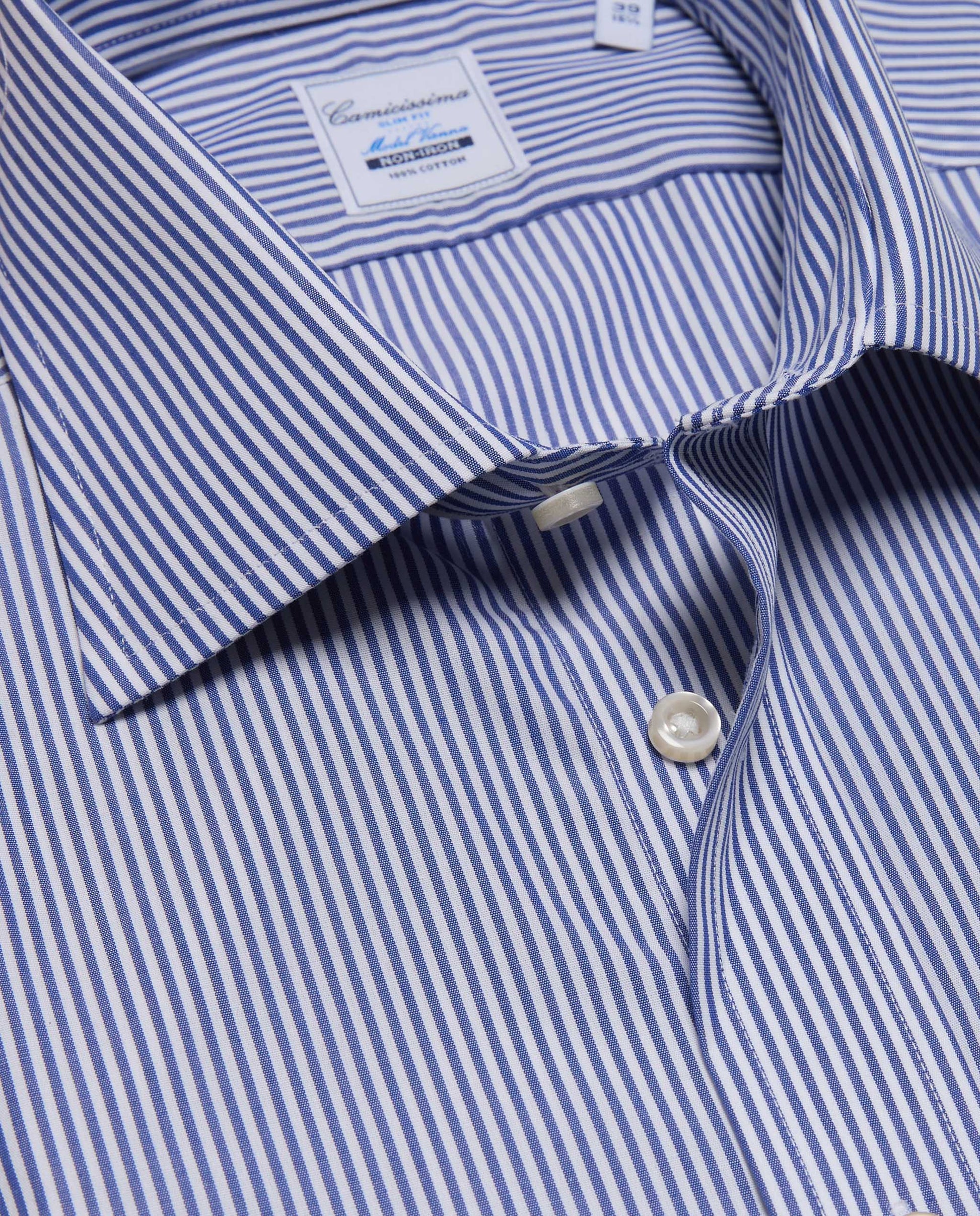 Camicissima Men’s Blue Striped Non-Iron Permanent Slim Fit Cotton Shirt