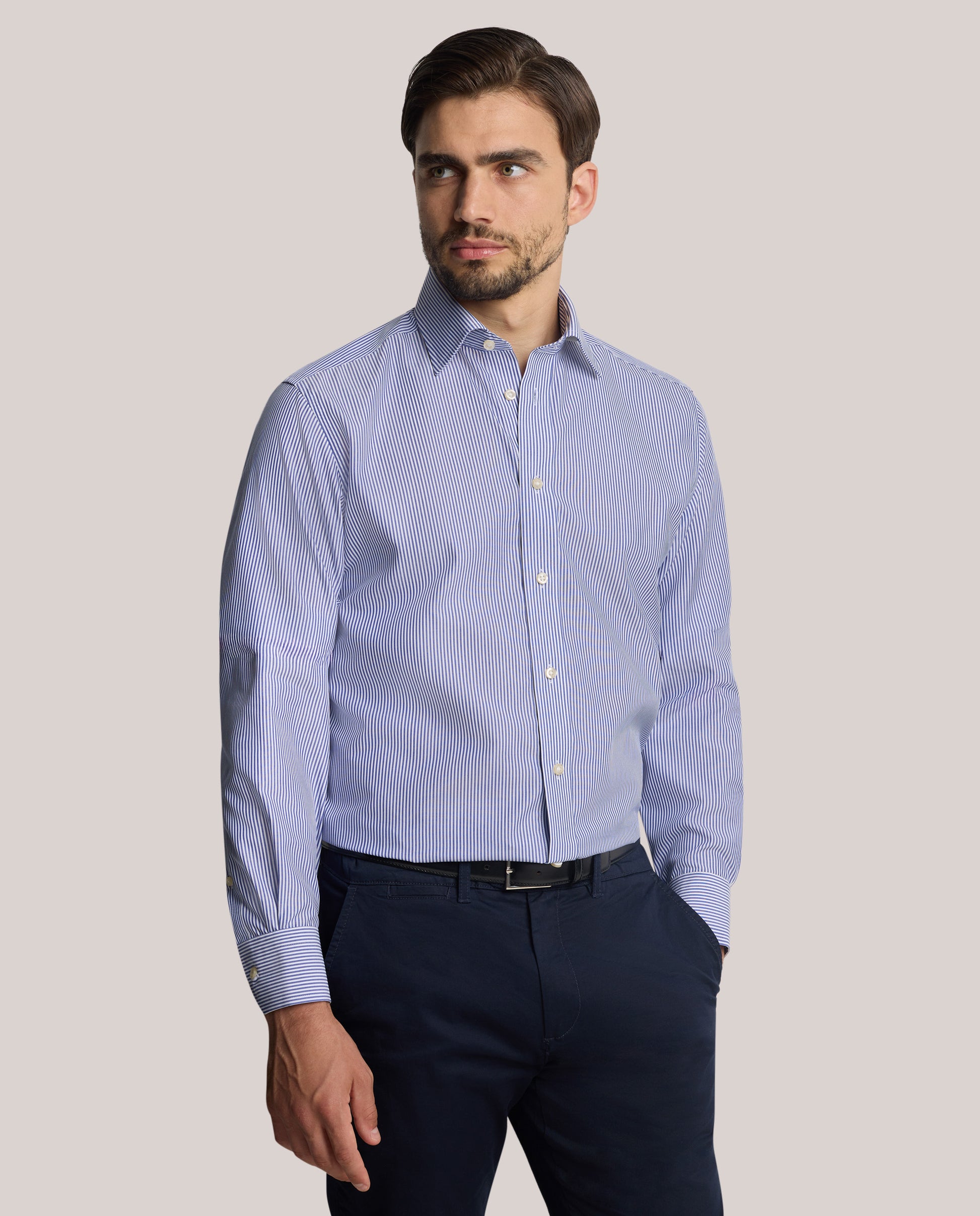 • Long Sleeves with Classic Collar – ideal for professional styling